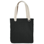 The Allie Tote is perfect for shopping, commuting or sightseeing. Contrast lining, striped handles and large metal grommets add a touch of whimsy to this casual tote.